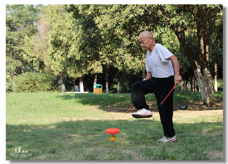 雙休日,龍湖公園拍攝到技藝高超的抖空竹的老人。