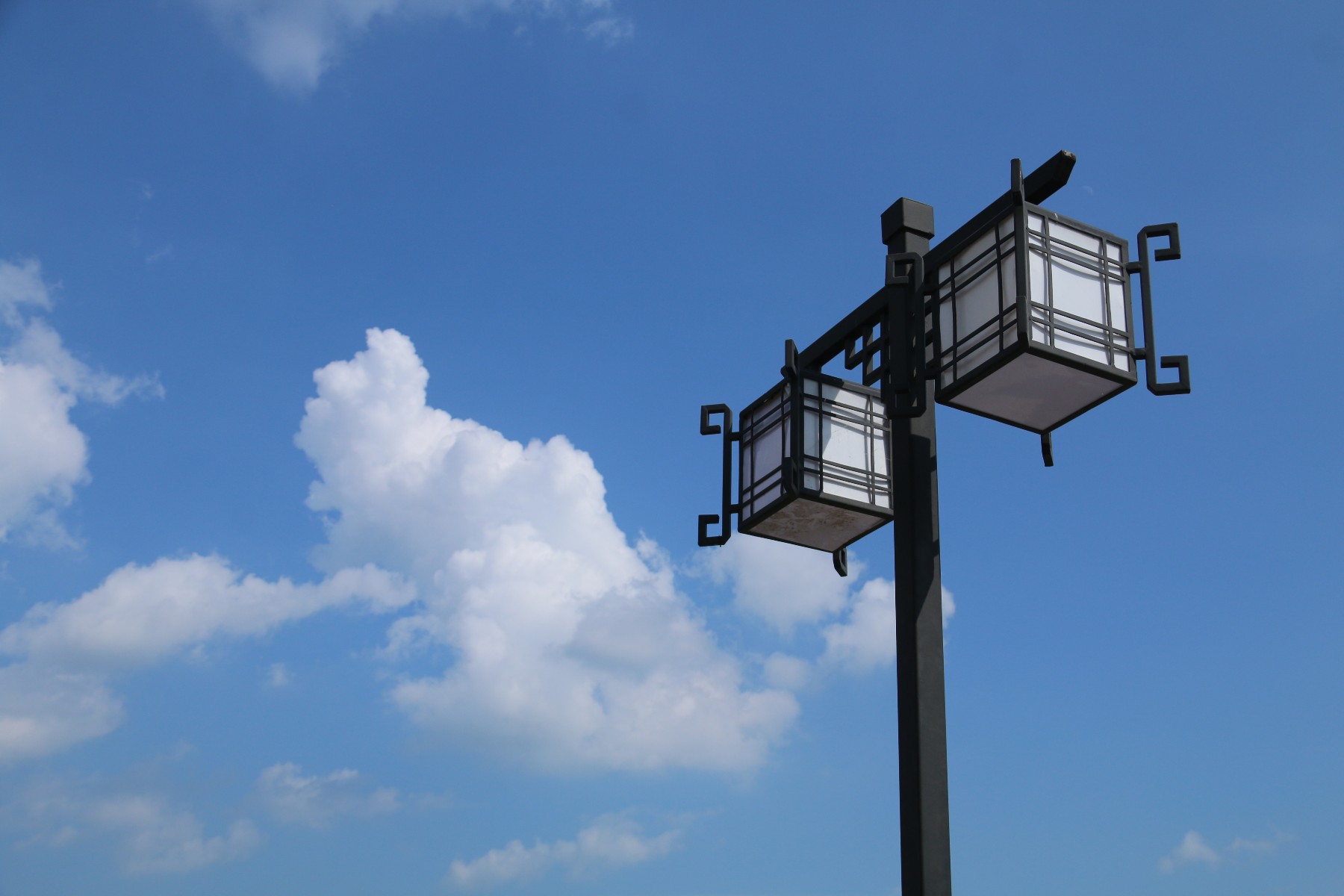 中午,天是瓦藍藍的,云被襯得雪白雪白。藍天如水洗過一樣的清明,幾朵白云就靜靜地停在那里,很超然,很恬靜。白云朵朵,云輕如棉。