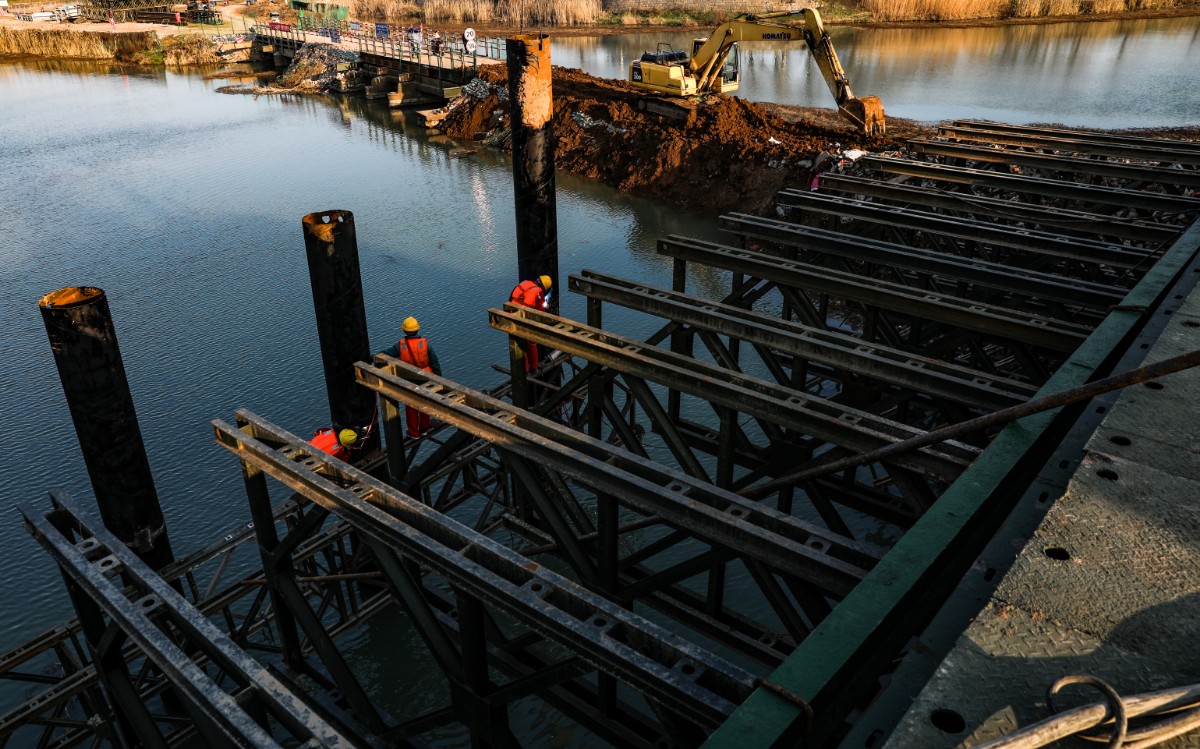 復工的引江濟淮工程(東津渡大橋)