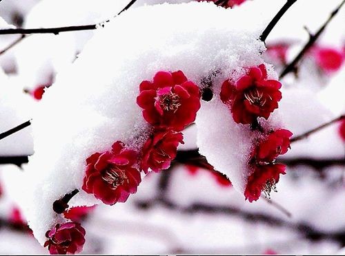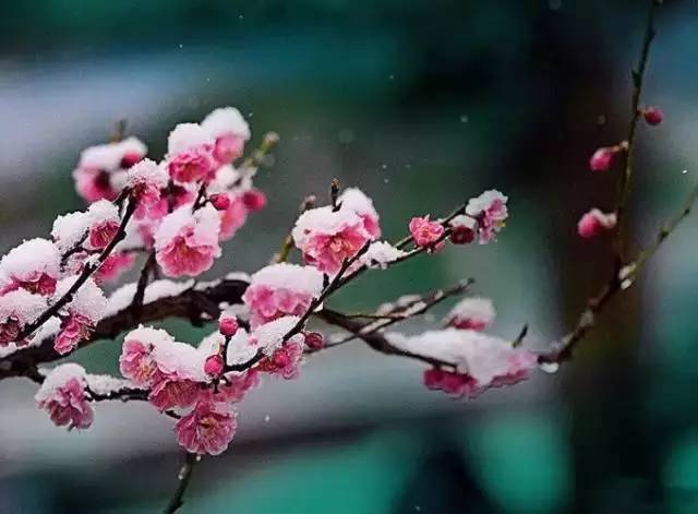 梅放辭冬迎雪開,青松高潔聳巖臺。