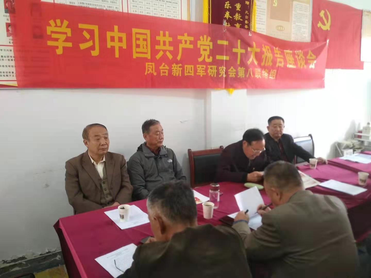 鳳臺縣新四軍研究會第八聯絡組 學習座談黨的二十大報告 10月23日上午,鳳臺縣新四軍研究會第八聯絡組在縣春暉學校舉行了學習黨的二十大報告座談會。 在學習座談會上,縣新研會第八聯絡組組長張厚亮同志領學了習近平同志代表第十九屆中央委員會在黨的二十大會議上作的報告;副組長阮仁鵬同志領學了黨的二十大報告中的新表述、新概括、新論斷;理事朱明軍同志領學了數讀二十大報告;張厚亮、阮仁鵬二同志談了學習黨的二十大報告心得體會和思想感悟;大家還進行了熱烈討論。 通過學習討論,大家深有感觸地說,黨的十九大以來,以習近平同志為核心的黨中央高舉中國特色社會主義偉大旗幟,全面貫徹黨的十九大和十九屆歷次全會精神,堅持馬克思列寧主義、毛澤東思想、鄧小平理論、“三個代表”重要思想、科學發展觀,全面貫徹習近平新時代中國特色社會主義思想,團結帶領全黨全軍全國各族人民,統攬偉大斗爭、偉大工程、偉大事業、偉大夢想,統籌推進“五位一體”總體布局,協調推進“四個全面”戰略布局,統籌新冠肺炎疫情防控和經濟社會發展,統籌發展和安全,堅持穩中求進工作總基調,全力推進全面建成小康社會進程,完整、準確、全面貫徹新發展理念,著力推動高質量發展,主動構建新發展格局,蹄疾步穩推進改革,扎實推進全過程人民民主,全面推進依法治國,積極發展社會主義先進文化,突出保障和改善民生,集中力量實施脫貧攻堅戰,大力推進生態文明建設,堅決維護國家安全,防范化解重大風險,保持社會大局穩定,大力度推進國防和軍隊現代化建設,全方位開展中國特色大國外交,全面推進黨的建設新的偉大工程。5年來,以習近平同志為核心的黨中央審時度勢、守正創新,敢于斗爭、善于斗爭,團結帶領全黨全軍全國各族人民有效應對嚴峻復雜的國際形勢和接踵而至的巨大風險挑戰,以奮發有為的精神把新時代中國特色社會主義不斷推向前進,攻克了許多長期沒有解決的難題,辦成了許多事關長遠的大事要事,推動黨和國家事業取得舉世矚目的重大成就。 與會同志表示,我們作為新研會理事就是要繼續在縣新研會的領導下,認真貫徹黨的二十大精神,謙虛謹慎,不驕不躁,多學習黨史,多學習新四軍和革命斗爭史,努力為新研會多做工作,不折不扣地完成縣新研會交給的各項工作任務, 實現中華民族偉大復興不斷作出新的貢獻。(胡仲昌 化石)