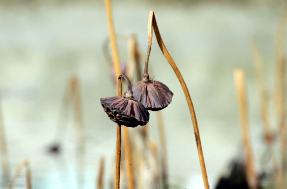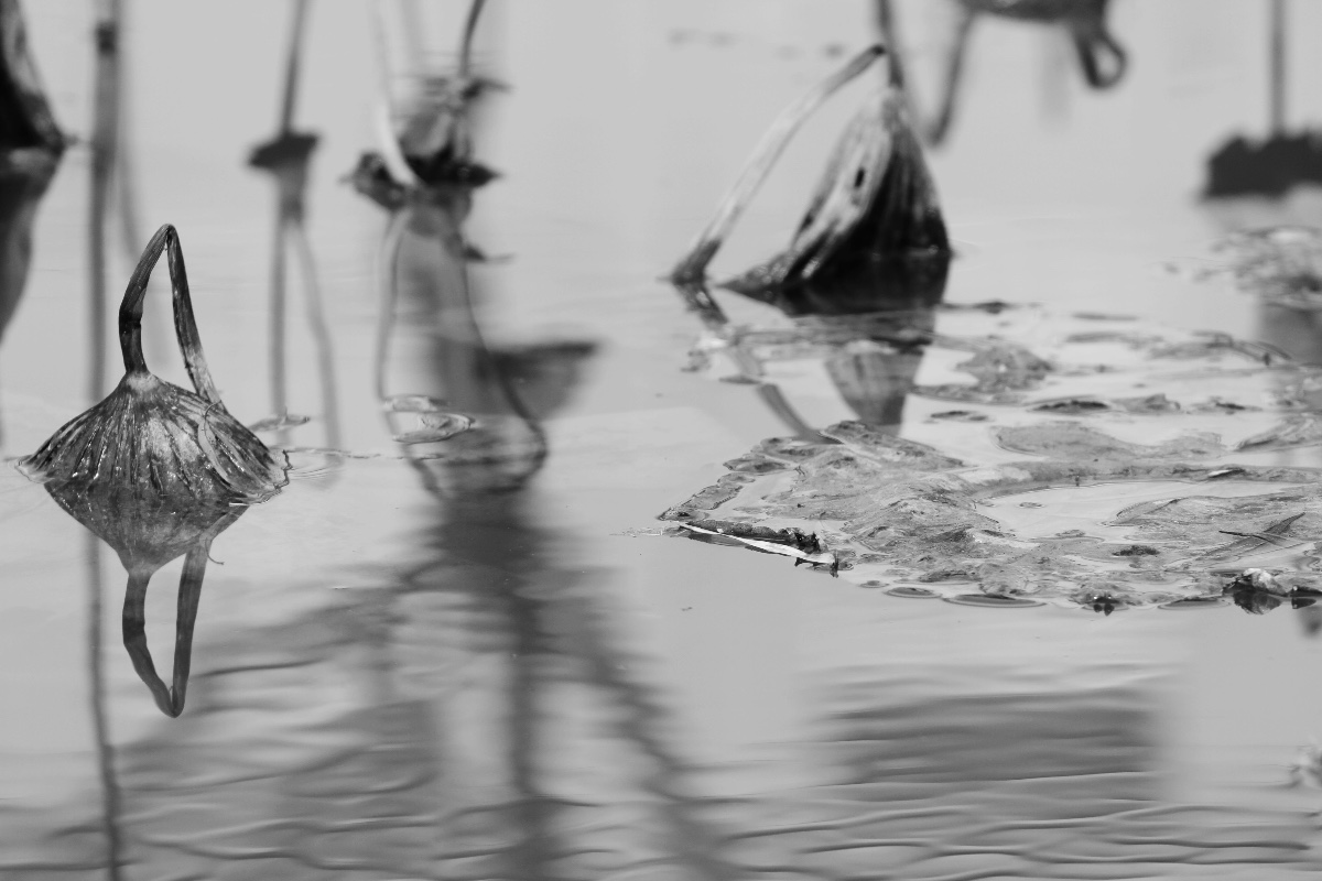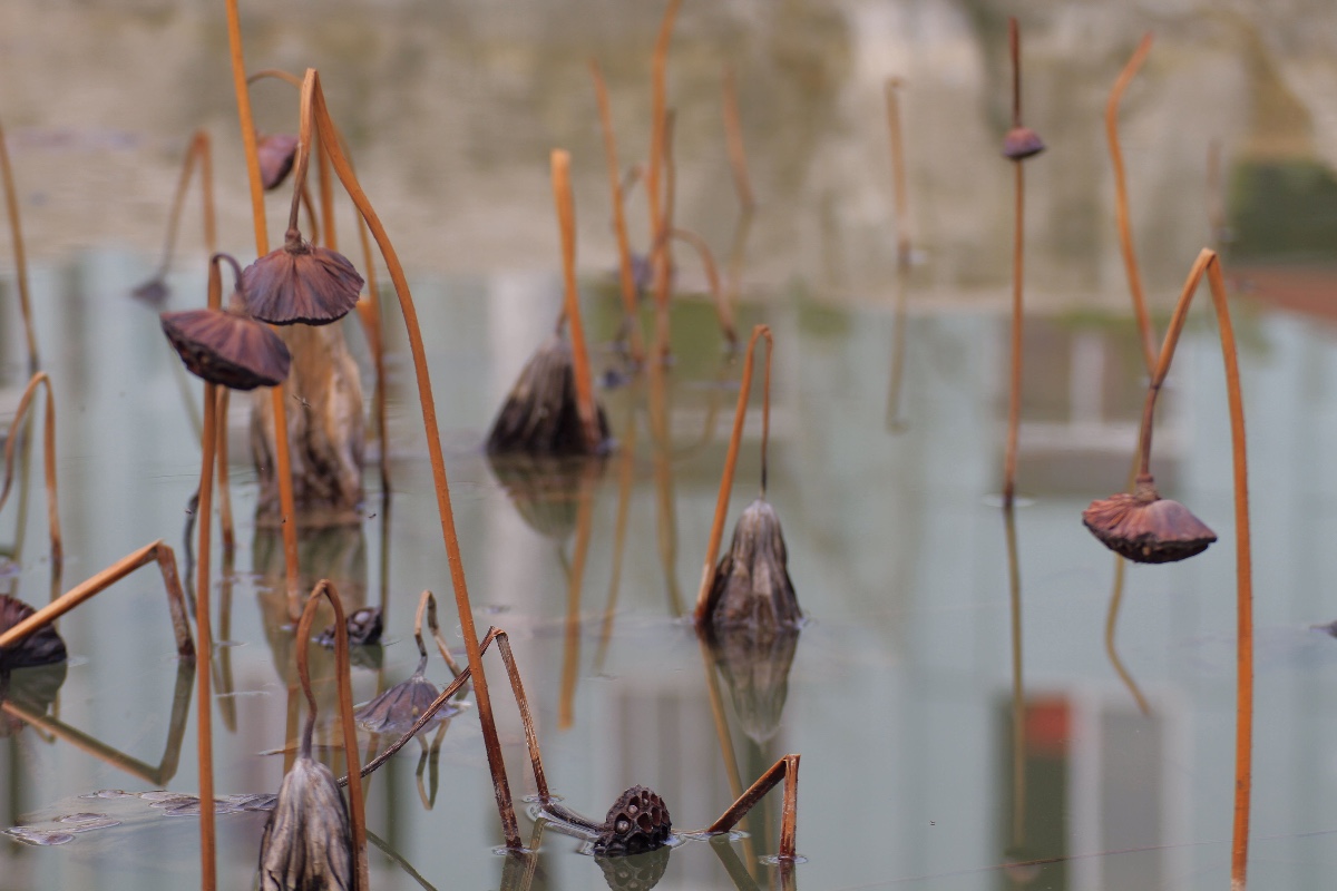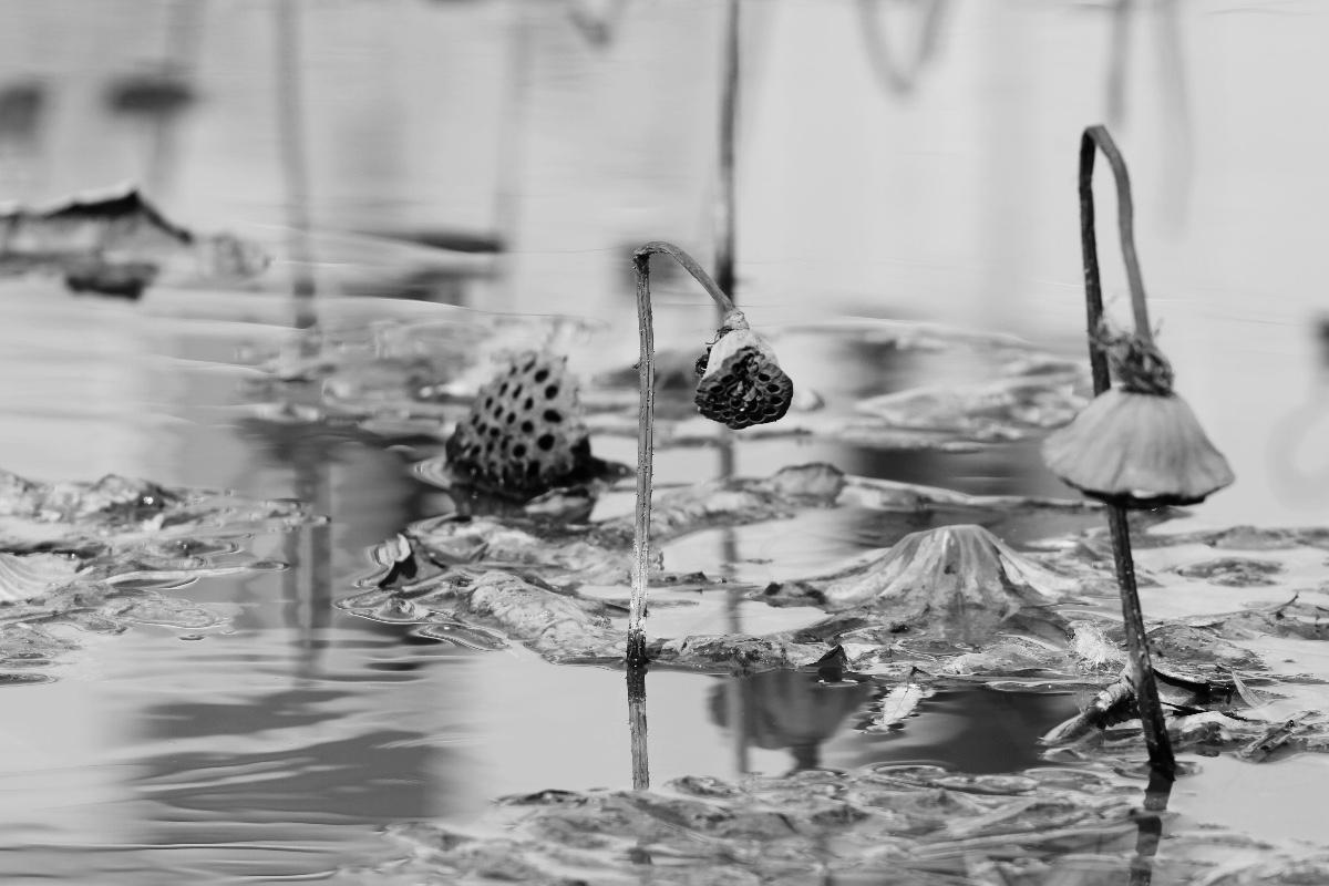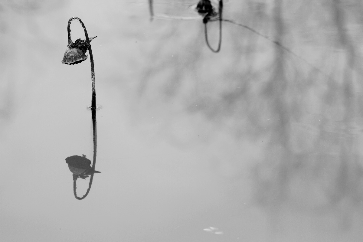 殘荷之美就在于它“雪壓降青顏,寒侵壯徑骨”后的折曲之美、殘徑之美、孤顏之美!