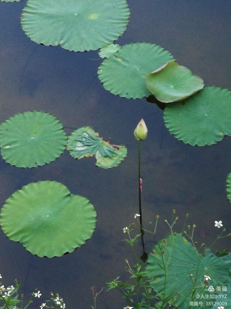 半畝荷蓮隨岸綠,一池翠葉配花紅。