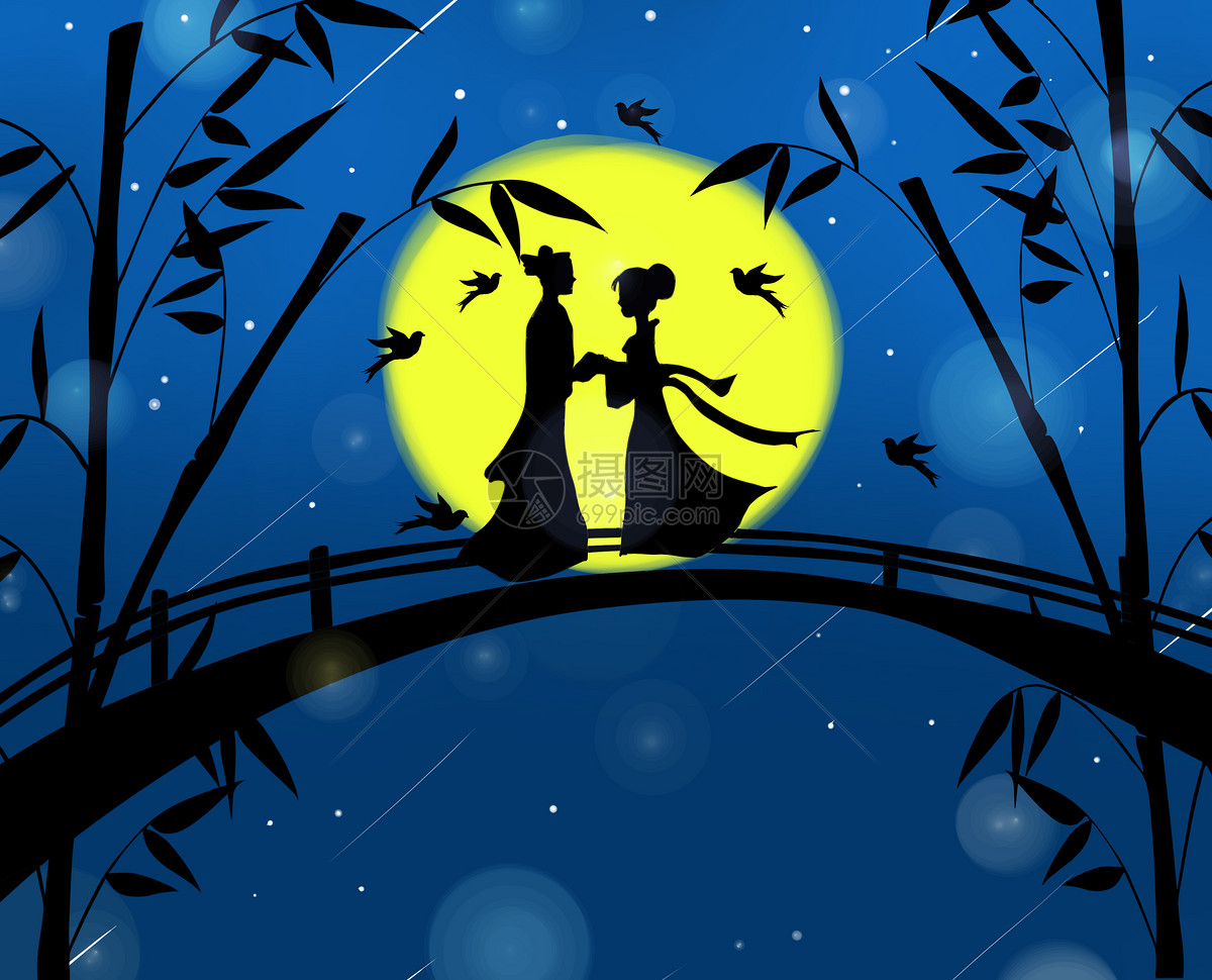 天河對岸同癡醉,七夕橋親喜鵲功。