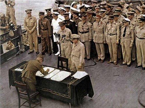 1945年9月2日上午9時,標志著二戰(zhàn)結束的日本投降簽字儀式,在停泊在東京灣的密蘇里號主甲板上舉行。代表日本天皇和政府的日本新任外相重光葵和代表日本帝國大本營的陸軍參謀長梅津美治郎依次在投降書上簽字 ;1945年9月9日9時,南京中央陸軍軍官學校大禮堂舉行第二次世界大戰(zhàn)中國戰(zhàn)區(qū)受降儀式,代表日本侵華日軍總司令岡村寧次正式向代表中華民國政府陸軍總司令何應欽呈交投降書 。日本宣布無條件投降。1945年10月25日,中華民國政府在臺灣舉行受降儀式,這成為抗日戰(zhàn)爭取得完全勝利的重要標志。
