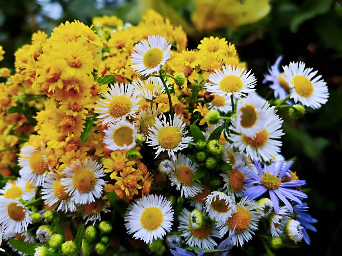 野菊繽紛濃彩艷,木犀蓊郁異香深。